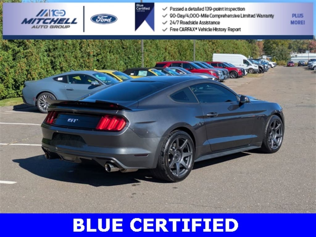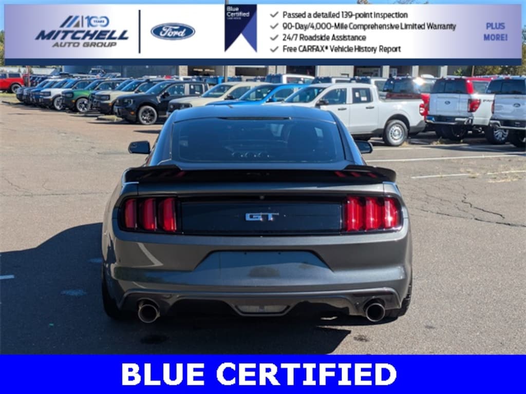 Ford Blue Certified Certified, ** - BLUE CERTIFIED PRE-OWNED FORD MUSTANG GT !!! --- PART OF THE FORD BLUE ADVANTAGE PROGRAM!! - LOCATED AT MITCHELL SELIG FORD IN WINDSOR, CT AT 801 BLOOMFIELD AVE --- RIGHT OFF EXIT 37 VIA ROUTE 91 !!! -- CONTACT US TODAY AT 860-688-3651 OR ONLINE AT MitchellSeligFord.com !!!, *** -- BRAND NEW REAR BRAKES INCLUDING NEW REAR BRAKE ROTORS & NEW REAR BRAKE PADS !!!!, 3.15 Limited Slip Axle Ratio, Alloy wheels, Cloth Sport Bucket Seats w/Pony Logo, Equipment Group 300A, Exterior Parking Camera Rear, Front fog lights, Fully automatic headlights, Interior & Wheel Package, Power door mirrors, Power driver seat, Power passenger seat, Power windows, Premium Carpeted Floor Mats w/Pony Logo, SYNC Communications & Entertainment System.