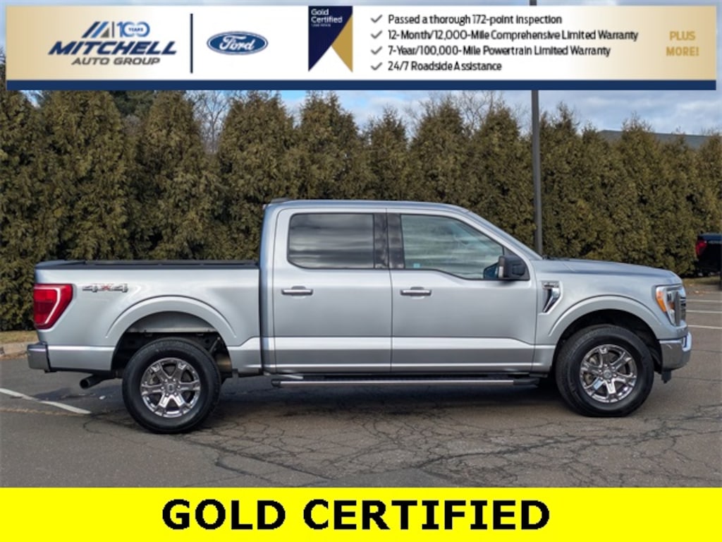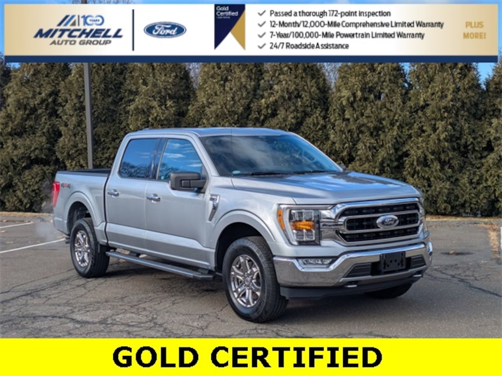 Ford Gold Certified Certified, 4WD, ** - GOLD CERTIFIED PRE-OWNED FORD F-150 XLT !!! --- PART OF THE FORD BLUE ADVANTAGE PROGRAM!! - LOCATED AT MITCHELL SELIG FORD IN WINDSOR, CT AT 801 BLOOMFIELD AVE --- RIGHT OFF EXIT 37 VIA ROUTE 91 !!! -- CONTACT US AT 860-688-3651 OR ONLINE AT MitchellSeligFord.com !!!, 10-Way Power Driver & Passenger Seats, 8" Productivity Screen in Instrument Cluster, Alloy wheels, Auto High-beam Headlights, Class IV Trailer Hitch Receiver, Cloth 40/20/40 Front Seat, Dual Zone Automatic Temperature Control, Electronic Locking w/3.55 Axle Ratio, Equipment Group 302A High, Extended Range 36 Gallon Fuel Tank, Exterior Parking Camera Rear, Front fog lights, GVWR: 6,600 lbs Payload Package, Heated Front Seats, Integrated Trailer Brake Controller, Intelligent Access w/Push Button Start, Leather-Wrapped Steering Wheel, LED Box Lighting w/Zone Lighting, LED Reflector Headlamps, LED Sideview Mirror Spotlights, Onboard 400W Outlet, Power door mirrors, Power Glass Heated Sideview Mirrors, Power windows, Power-Sliding Rear Window, Pro Trailer Backup Assist, Radio: AM/FM Stereo w/6 Speakers, Rear Under-Seat Storage, Remote Start System w/Remote Tailgate Release, SYNC 4, SYNC 4 w/Enhanced Voice Recognition, Trailer Tow Package, Wheels: 18" Chrome-Like PVD, XLT Chrome Appearance Package.