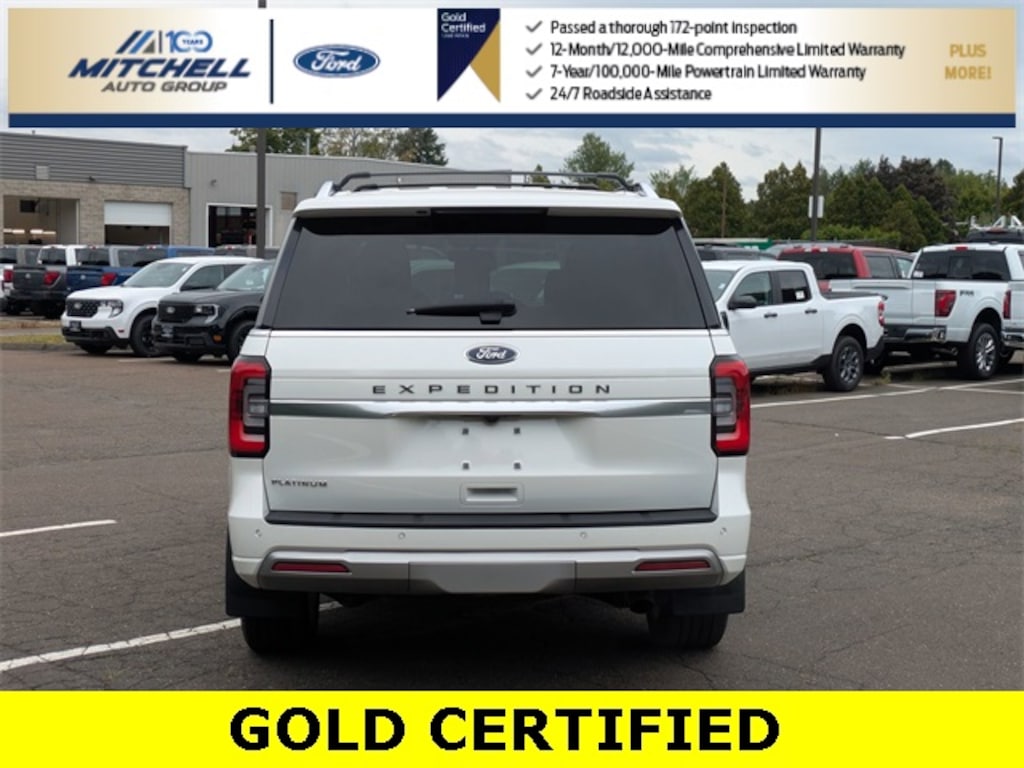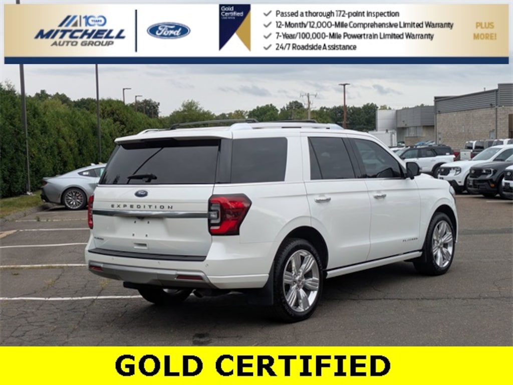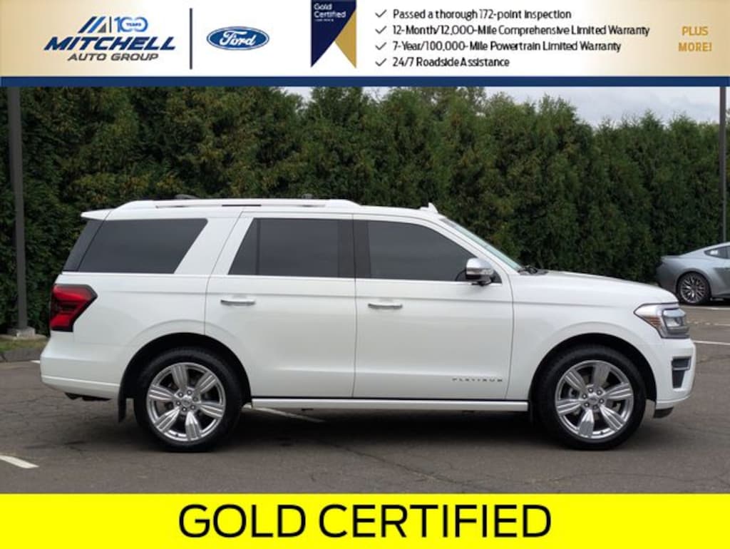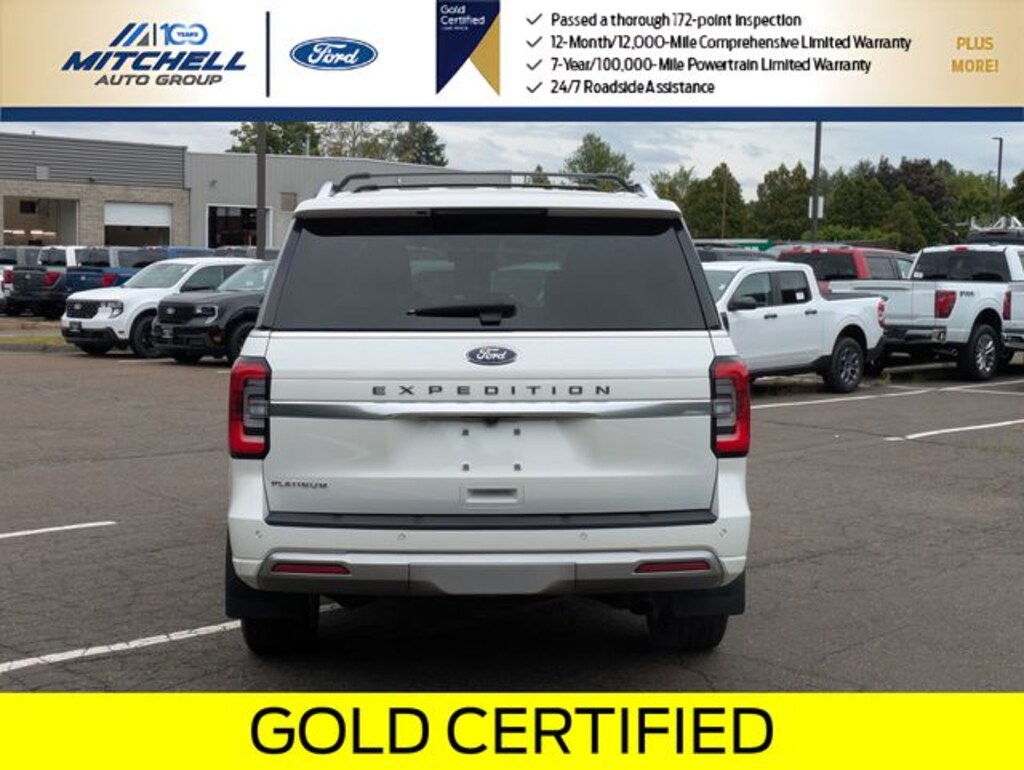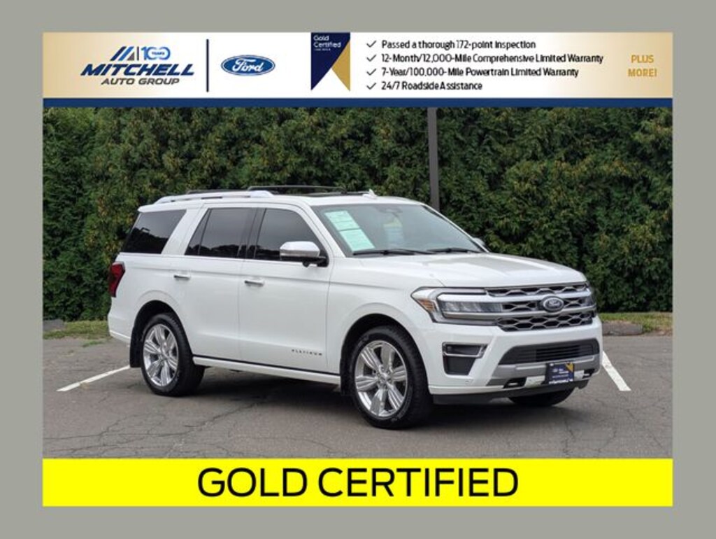 Ford Gold Certified Certified, 4WD, ** - GOLD CERTIFIED PRE-OWNED FORD EXPEDITION PLATINUM !!! --- PART OF THE FORD BLUE ADVANTAGE PROGRAM!! - LOCATED AT MITCHELL SELIG FORD IN WINDSOR, CT AT 801 BLOOMFIELD AVE --- RIGHT OFF EXIT 37 VIA ROUTE 91 !!! -- CONTACT US AT 860-688-3651 OR ONLINE AT MitchellSeligFord.com !!!, 26mm Engine Radiator, 360-Degree Camera w/Trailer Reverse Guidance, Active Park Assist 2.0 Removal, Adaptive suspension, Alloy wheels, AM/FM radio: SiriusXM with 360L, Auto High-beam Headlights, Automatic temperature control, ControlTrac w/3.73 Axle Ratio, Equipment Group 600A Standard Package, Exterior Parking Camera Rear, Front dual zone A/C, Front fog lights, Fully automatic headlights, Genuine wood console insert, Genuine wood dashboard insert, Genuine wood door panel insert, Heated door mirrors, Heated front seats, Heated rear seats, Heated steering wheel, Heavy-Duty Trailer Tow Package, Htd/Ventilated Prem Lthr Front Captain's Chairs (DISC), Integrated Trailer Brake Controller, Leather steering wheel, Memory seat, Navigation system: Connected Navigation, Pedal memory, Power door mirrors, Power driver seat, Power Liftgate, Power moonroof, Power passenger seat, Power windows, Pro Trailer Backup Assist, Radio: B&O Unleashed Sound System by Bang & Olufsen, Rain sensing wipers, Second Row Power Windows Removal, SiriusXM w/360L, Speed-sensing steering, Speed-Sensitive Wipers, SYNC 4 w/Enhanced Voice Recognition, Ventilated front seats, Wheels: 22" 6-Spoke Polished Aluminum.