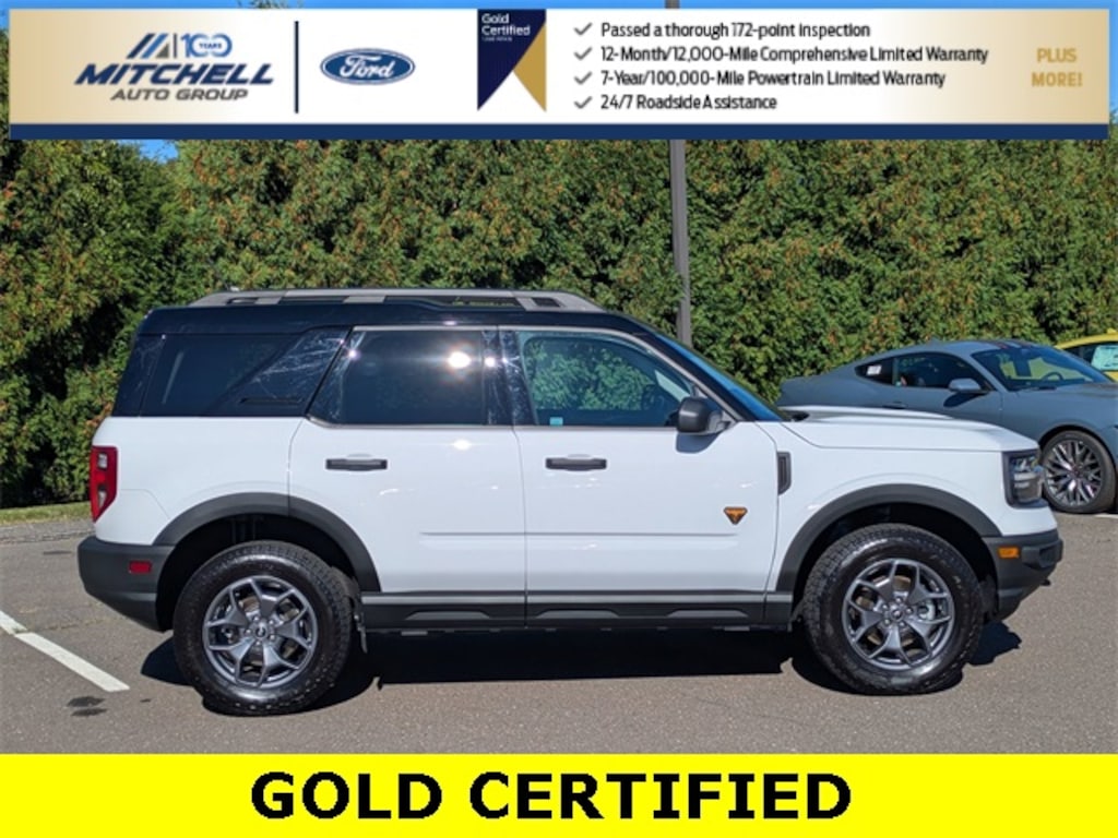 Ford Gold Certified Certified, ** - GOLD CERTIFIED PRE-OWNED FORD BRONCO SPORT BADLANDS !!! --- PART OF THE FORD BLUE ADVANTAGE PROGRAM!! - LOCATED AT MITCHELL SELIG FORD IN WINDSOR, CT AT 801 BLOOMFIELD AVE --- RIGHT OFF EXIT 37 VIA ROUTE 91 !!! -- CONTACT US AT 860-688-3651 OR ONLINE AT MitchellSeligFord.com !!!, Alloy wheels, Auto High-beam Headlights, Automatic temperature control, Class II Trailer Tow Package w/Trailer Sway Control, Equipment Group 400A, Front fog lights, Heated door mirrors, Power door mirrors, Power steering, Power windows, SiriusXM, Speed-Sensitive Wipers, SYNC 3 Communications & Entertainment System, Unique Style Cloth Sport Contour Bucket Seats, Wheels: 17" Carbonized Gray-Painted Aluminum.
