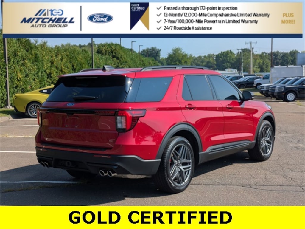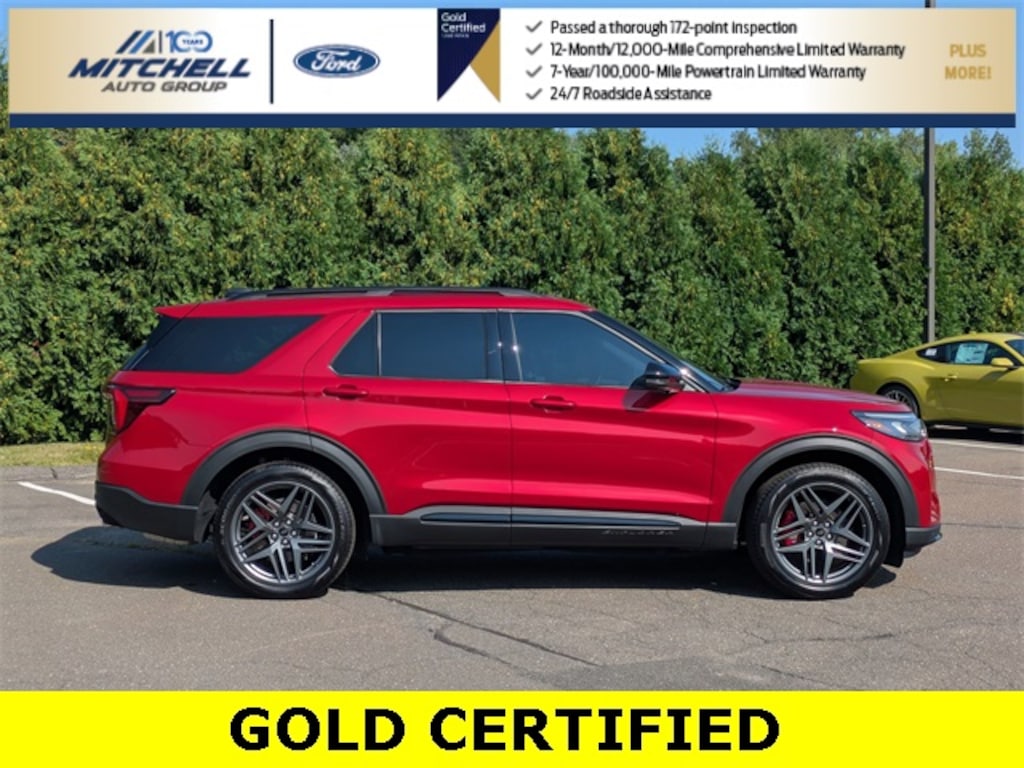 Ford Gold Certified Certified, ** - GOLD CERTIFIED PRE-OWNED FORD EXPLORER ST !!! --- PART OF THE FORD BLUE ADVANTAGE PROGRAM!! - LOCATED AT MITCHELL SELIG FORD IN WINDSOR, CT AT 801 BLOOMFIELD AVE --- RIGHT OFF EXIT 37 VIA ROUTE 91 !!! -- CONTACT US AT 860-688-3651 OR ONLINE AT MitchellSeligFord.com !!!, Alloy wheels, Apple CarPlay/Android Auto, Auto High-beam Headlights, Automatic temperature control, Equipment Group 400A Standard Package, Exterior Parking Camera Rear, Front dual zone A/C, Front fog lights, Heated door mirrors, Heated front seats, Heated rear seats, Heated steering wheel, Heated/Ventilated Miko Sport Captain's Chairs, Leather steering wheel, Memory seat, Navigation System, Power door mirrors, Power driver seat, Power Liftgate, Power passenger seat, Power windows, Radio: B&O Sound System by Bang & Olufsen, Rain sensing wipers, Speed-Sensitive Wipers, Ventilated front seats, Wheels: 21" Magnetite-Painted Aluminum.