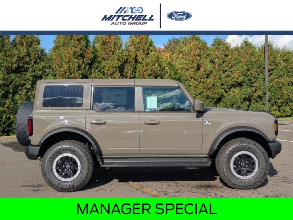 ** - LOCATED AT MITCHELL SELIG FORD IN WINDSOR, CT AT 801 BLOOMFIELD AVE --- RIGHT OFF EXIT 37 VIA ROUTE 91 !!! -- CONTACT US TODAY AT 860-688-3651 OR ONLINE AT MitchellSeligFord.com !!!, ** - ALL ONLINE PRICING INCLUDES ALL APPLICABLE REBATES AND MUST FINANCE WITH FORD MOTOR CREDIT TO RECEIVE ONLINE PRICE AS THERE ARE REBATES THAT REQUIRE FINANCING WITH FORD !!, 4.7 Final Drive Ratio, Alloy wheels, Auto High-beam Headlights, Automatic temperature control, Bronco-Branded Console Cupholder, Door Storage Bags, Equipment Group 312A Mid Package, Exterior Parking Camera Rear, Ford Integrated Tether System (FITS) Accessory Pkg, Front dual zone A/C, Front fog lights, Hard Top Sound Deadening Headliner, Heated door mirrors, Heated front seats, Heated Leather-Trimmed/Vinyl Bucket Seats, Heated steering wheel, High Clearance Fender Flares, High Clearance Suspension, Navigation system: Connected Navigation, Painted Hard Top, Position-Sensitive Bilstein Shock Absorbers, Power door mirrors, Power driver seat, Power passenger seat, Power windows, Rear-Window Defroster & Washer, Sasquatch Package, SiriusXM w/360L, SYNC 4, Wheel Lock Kit (DIO), Wheels: 17" Black High Gloss-Painted Aluminum. Some customers may not qualify for all incentives listed, please contact dealer for details, Price includes: $2750 - Retail Customer Cash. Exp. 04/30/2026