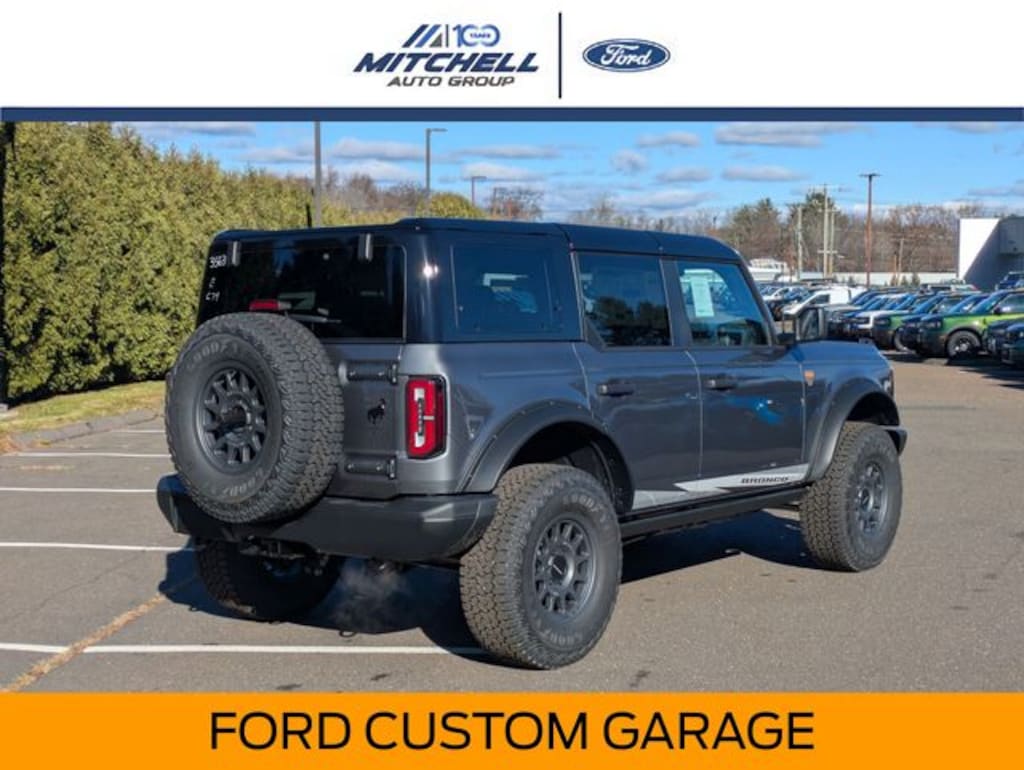 ** - LOCATED AT MITCHELL SELIG FORD IN WINDSOR, CT AT 801 BLOOMFIELD AVE --- RIGHT OFF EXIT 37 VIA ROUTE 91 !!! -- CONTACT US TODAY AT 860-688-3651 OR ONLINE AT MitchellSeligFord.com !!!, ** - ALL ONLINE PRICING INCLUDES ALL APPLICABLE REBATES AND MUST FINANCE WITH FORD MOTOR CREDIT TO RECEIVE ONLINE PRICE AS THERE ARE REBATES THAT REQUIRE FINANCING WITH FORD !!, **** --- THIS BRONCO IS OUTFITTED BY FORD CUSTOM GARAGE WITH THE DARK TRAIL MATTE TITANIUM ACCESSORY PACKAGE !!! -- PRICING INCLUDES THE DARK TRAIL MATTE TITANIUM PACKAGE AS PICTURED !!! *** -- MATTE TITANIUM WHEELS, 2" LIFT KIT WITH OFF-ROAD SUSPENSION, 35" GOODYEAR TIRES, PROCAL TOOL, HOOD GRAPHIC, ROCKER GRAPHIC, MATTE BLACK REAR HORSE EMBLEM, SMOKED OVAL, BLACK LUG NUT KIT !!!!, 4.46 Axle Ratio, Alloy wheels, Auto High-beam Headlights, Equipment Group 331A Standard Package, Exterior Parking Camera Rear, Front fog lights, Heated door mirrors, Heated front seats, Heated steering wheel, Marine Grade Vinyl Heated Bucket Seats, Power door mirrors, Power windows, Second Row Panel Roof Bag Storage (DIO), Shadow Black Painted Hard Top, SiriusXM w/360L, SYNC 4, Trailer Tow Package (DIO). Some customers may not qualify for all incentives listed, please contact dealer for details, Price includes: $2750 - Retail Customer Cash. Exp. 04/30/2026