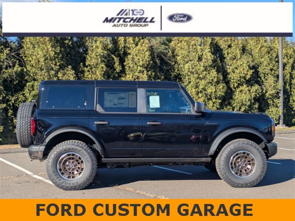 ** - LOCATED AT MITCHELL SELIG FORD IN WINDSOR, CT AT 801 BLOOMFIELD AVE --- RIGHT OFF EXIT 37 VIA ROUTE 91 !!! -- CONTACT US TODAY AT 860-688-3651 OR ONLINE AT MitchellSeligFord.com !!!, ** - ALL ONLINE PRICING INCLUDES ALL APPLICABLE REBATES AND MUST FINANCE WITH FORD MOTOR CREDIT TO RECEIVE ONLINE PRICE AS THERE ARE REBATES THAT REQUIRE FINANCING WITH FORD !!, *** --- THIS BRONCO IS OUTFITTED WITH THE SINISTER BRONZE ACCESSORY PACKAGE BY FORD CUSTOMER GARAGE !!! -- FCG SINISTER BRONZE PACKAGE AS PICTURED IS INCLUDED IN THE PRICE --- 17"X8.5" BRONZE WHEELS, PROCAL TOOL, 35" GOODYEAR TIRES, 2" LIFT KIT, OFFROAD SUSPENSION, UPGRADED SPARE TIE CARRIER, GRILLE LETTERING OVERLAY KIT IN BRONZE, REAR HORSE EMBLEM IN BRONZE, BRONCO SCRIPT BADGE IN MATTE BLACK, SMOKED OVAL, BLACK LUG NUT KIT !!!!! *** ---, 4.46 Axle Ratio, Alloy wheels, AM/FM radio: SiriusXM with 360L, Auto High-beam Headlights, Equipment Group 331A Standard Package, Exterior Parking Camera Rear, Front fog lights, Hard Top Sound Deadening Headliner, Heated door mirrors, Heated front seats, Heated steering wheel, Marine Grade Vinyl Heated Bucket Seats, Power door mirrors, Power windows, Rear-Window Defroster & Washer, Shadow Black Painted Hard Top, SiriusXM w/360L, SYNC 4, Trailer Tow Package (DIO). Some customers may not qualify for all incentives listed, please contact dealer for details, Price includes: $1500 - Bonus Customer Cash. Exp. 01/05/2026