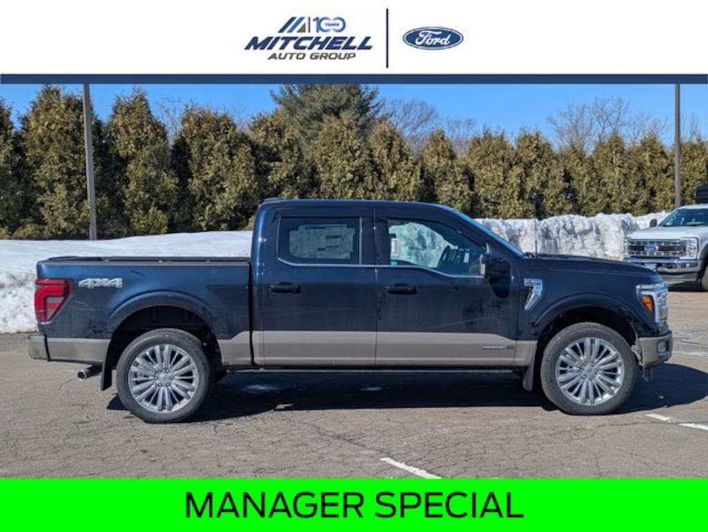 3.5L PowerBoost Full-Hybrid V6, 4WD, ** - LOCATED AT MITCHELL SELIG FORD IN WINDSOR, CT AT 801 BLOOMFIELD AVE --- RIGHT OFF EXIT 37 VIA ROUTE 91 !!! -- CONTACT US TODAY AT 860-688-3651 OR ONLINE AT MitchellSeligFord.com !!!, ** - ALL ONLINE PRICING INCLUDES ALL APPLICABLE REBATES AND MUST FINANCE WITH FORD MOTOR CREDIT TO RECEIVE ONLINE PRICE AS THERE ARE REBATES THAT REQUIRE FINANCING WITH FORD !!, Alloy wheels, AM/FM radio: SiriusXM with 360L, Auto High-beam Headlights, Chrome wheels, Electronic Locking with 3.73 Axle Ratio, Equipment Group 601A High, Exposed Wheel Lock Kit, Ford Connectivity Package (1-Year Included), Front and Rear Molded Splash Guards, Front fog lights, Genuine wood dashboard insert, Heated door mirrors, Heated front seats, Heated rear seats, Heated steering wheel, Illuminated Ford Logo Badge, King Ranch Multicontour Leather Bucket Seats, Navigation system: Connected Navigation, Power door mirrors, Power passenger seat, Power-Deployable Running Boards, Pro Power Onboard - 7.2KW, Radio: B&O Unleashed Sound System by Bang & Olufsen, Rain sensing wipers, Side Window Air Deflector, SiriusXM with 360L (3-Year Plan), SYNC 4 with Enhanced Voice Recognition, Tough Bed Spray-in Bedliner, Twin Panel Moonroof, Ventilated front seats, Wheel Well Liner, Wheels: 22" Premium Painted with Chrome Inserts. Some customers may not qualify for all incentives listed, please contact dealer for details, Price includes: $500 - Retail Customer Cash. Exp. 04/30/2026