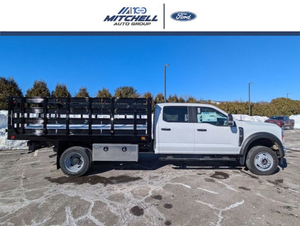 4WD, ** - LOCATED AT MITCHELL SELIG FORD IN WINDSOR, CT AT 801 BLOOMFIELD AVE --- RIGHT OFF EXIT 37 VIA ROUTE 91 !!! -- CONTACT US TODAY AT 860-688-3651 OR ONLINE AT MitchellSeligFord.com !!!, ** - ALL ONLINE PRICING INCLUDES ALL APPLICABLE REBATES AND MUST FINANCE WITH FORD MOTOR CREDIT TO RECEIVE ONLINE PRICE AS THERE ARE REBATES THAT REQUIRE FINANCING WITH FORD !!, **** ---- PRICING INCLUDES KNAPHEIDE HEAVY DUTY VALUE-MASTER-X PLATFORM BODY WITH BULKHEAD WITH WINDOW, STEEL STAKE RACKS, SWING RACKS, BACK UP ALARM, FULL HITCH PLATE COMBO AND UNDERBODY TOOLBOXES ALL AS PICTURED !!!! **** ---, 410 Amp Dual Alternators, ABS brakes, Bright Grille, Chrome Front Bumper, Compass, Dual 68 AH/65 AGM Battery, Engine Block Heater, Ford Connectivity Package (1-Year Included), GVWR: 16,000 Lb Payload Package, GVWR: 16,500 Lb Payload Package, Halogen Fog Lamps, HD Vinyl 40/20/40 Split Bench Seat, Heated door mirrors, Illuminated entry, Internet access capable: 5G Modem - Ford Connectivity Package, Limited Slip with 4.88 Axle Ratio, Low tire pressure warning, Order Code 650A, Platform Running Boards, Power door mirrors, Privacy Glass with Power Sliding Rear Glass, Pro Power Onboard - 400W Outlet, Radio: AM/FM Stereo with MP3 Player, Rear View Camera and Prep Kit, Rear Window Defroster, Remote keyless entry, Remote Start, Snow Plow Prep Package, SYNC 4, Traction control, Wheels: 19.5" x 6" Argent Painted Steel, XL Chrome Package.