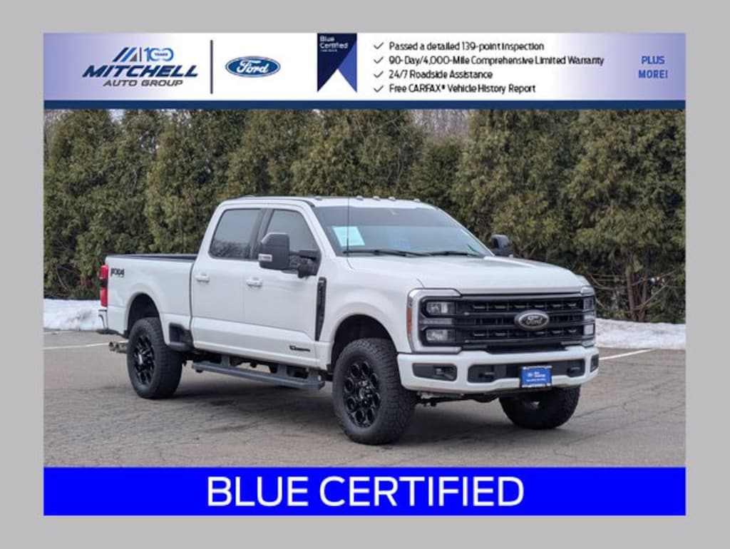Ford Blue Certified Certified, 4WD, ** - BLUE CERTIFIED PRE-OWNED FORD F-250 LARIAT SUPER DUTY !!! --- PART OF THE FORD BLUE ADVANTAGE PROGRAM!! - LOCATED AT MITCHELL SELIG FORD IN WINDSOR, CT AT 801 BLOOMFIELD AVE --- RIGHT OFF EXIT 37 VIA ROUTE 91 !!! -- CONTACT US TODAY AT 860-688-3651 OR ONLINE AT MitchellSeligFord.com !!!, *** --- BRAND NEW FRONT BRAKES INCLUDING NEW FRONT BRAKE ROTORS & NEW FRONT BRAKE PADS !!!!, **** --- BRAND NEW REAR BRAKES INCLUDING NEW REAR BRAKE ROTORS & NEW REAR BRAKE PADS !!!, 4-Way Adjustable Headrests, 410 Amp Dual Alternators, 6" Ebony Black Angular Running Boards, Adjustable pedals, Alloy wheels, Auto High-beam Headlights, Automatic temperature control, Black Appearance Package, BLIS w/Cross-Traffic Alert, Body Color Front & Rear Bumpers, Dual 68 AH/65 AGM Batteries, Ebony Black Painted Front Grille Bars, Ebony Black Painted Mirror Caps, Electronic-Locking w/3.31 Axle Ratio, Engine Block Heater, Exterior Parking Camera Rear, F-250 >10K GVWR Package, Flow-Through Console, Front dual zone A/C, Front fog lights, Front Leather-Trimmed 40/Console/40 Seats, Front Sensing System, FX4 Off-Road Package, Head-Up Display, Heated door mirrors, Heated front seats, Heated rear seats, Heated steering wheel, Hill Descent Control, Lane-Keeping System, Lariat Ultimate Package, Leather steering wheel, LED Roof Clearance Lights, Memory seat, Navigation system: Connected Navigation, Off-Road Specifically Tuned Shock Absorbers, Order Code 608A, Pedal memory, Power door mirrors, Power driver seat, Power passenger seat, Power windows, Power-Deployable Running Boards, Pre-Collision Assist, Pro Trailer Backup Assist, Pro Trailer Hitch Assist, Radio: B&O Unleashed Sound System by Bang & Olufsen, Rain sensing wipers, Rapid-Heat Supplemental Cab Heater, Rear Wheel Well Liners (Pre-Installed), SiriusXM Radio w/360L, Snow Plow Prep Package, SYNC 4 w/Enhanced Voice Recognition, Tailgate Step & Handle, Tough Bed Spray-In Bedliner, Tow Technology Package, Twin Panel Power Moonroof, Unique FX4 Off-Road Box Decal, Upfitter Switches (6), Ventilated front seats, Wheels: 20" Machined & Ebony Black High Gloss, Wireless Charging Pad.