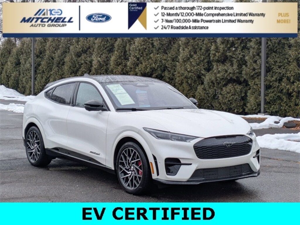 Ford EV Certified Certified, ** - FORD EV CERTIFIED PRE-OWNED FORD MUSTANG MACH-E GT PERFORMANCE EDITION !!! --- PART OF THE FORD BLUE ADVANTAGE PROGRAM!! - LOCATED AT MITCHELL SELIG FORD IN WINDSOR, CT AT 801 BLOOMFIELD AVE --- RIGHT OFF EXIT 37 VIA ROUTE 91 !!! -- CONTACT US AT 860-688-3651 OR ONLINE AT MitchellSeligFord.com !!!, Alloy wheels, Aluminum Applique Instrument Panel w/Unique Design, AM/FM radio: SiriusXM with 360L, Apple CarPlay/Android Auto, Auto High-beam Headlights, Automatic temperature control, Equipment Group 400A, Exterior Parking Camera Rear, Front dual zone A/C, Fully automatic headlights, GT Performance Edition, Heated ActiveX Sport Seats, Heated door mirrors, Heated front seats, Heated Perforated ActiveX Performance Seats, Heated steering wheel, MagneRide Dampening System, Memory seat, Navigation system: Connected Navigation, Power door mirrors, Power driver seat, Power Liftgate, Power passenger seat, Power windows, Rain sensing wipers, SiriusXM Radio w/360L, Speed-Sensitive Wipers, SYNC 4A w/Enhanced Voice Recognition, Wheels: 20" Machined-Face Aluminum.
